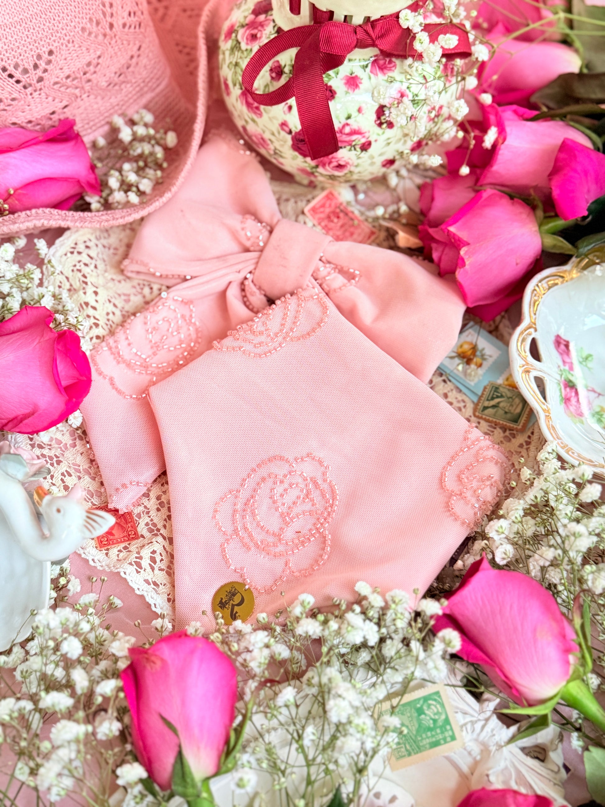 Demure and delicately detailed, the Lorelei features beaded floral mesh over soft pink charmeuse. A quietly elegant piece with classic charm ♡