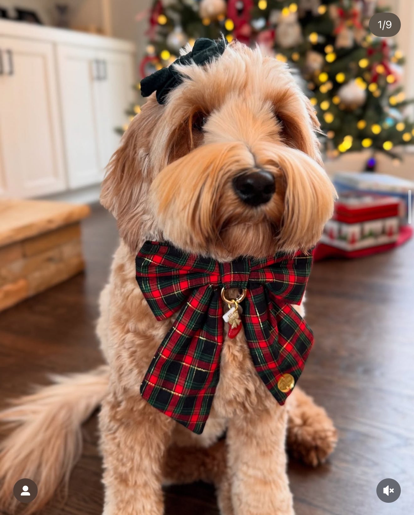 Joyful, bold, and bursting with holiday spirit. ‘Deck the Halls’ is a classic tartan bow in rich green and red with a dramatic silhouette that brings yuletide cheer to every pup. It’s the embodiment of wreaths on doors, carols in the air, and a bow that makes spirits (and tails) bright.
