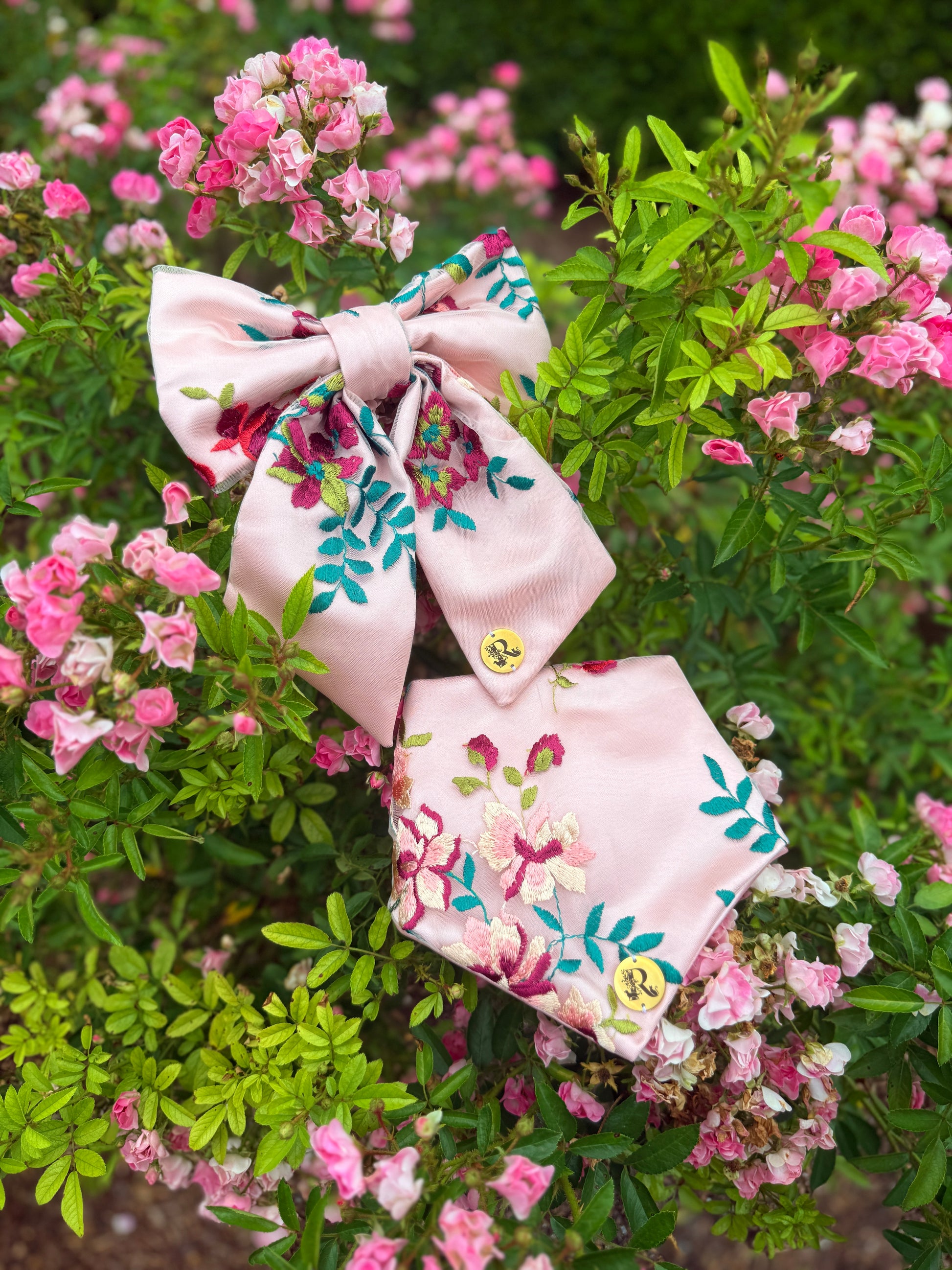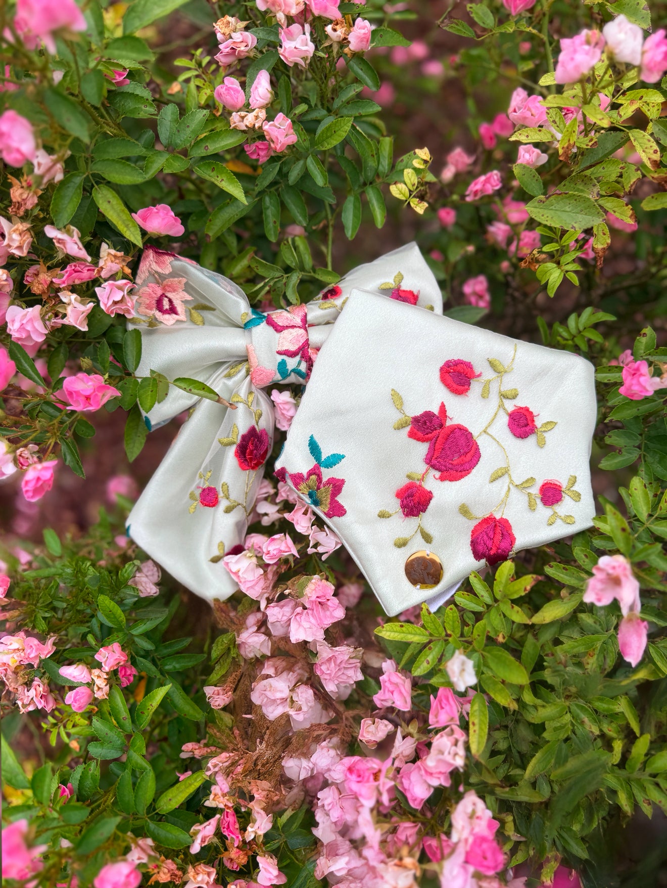 Like a sigh beneath starlight, this piece layers soft blush or sage charmeuse under a dreamy mesh of pink, teal, and berry-toned blooms. It’s delicate, floral, and full of feeling… just like Helena herself. A romantic haze of longing and wonder, spun from wildflowers and moonlit air.