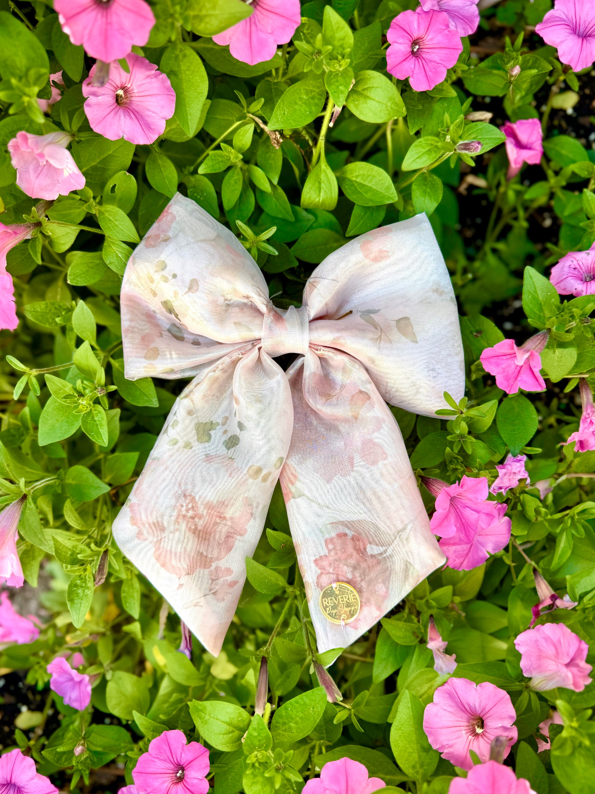 Rosalie is a delicate and dreamy soft pink organza adorned with a beautiful rose and floral print. This sheer, ethereal bow captures the essence of femininity, with a light, airy quality that’s both demure and enchanting 🌸The perfect touch of grace for those who appreciate the subtle beauty of a rose petal blowing in the spring breeze or how the sunlight brings out the beauty of each bud 🌸🌷🎀