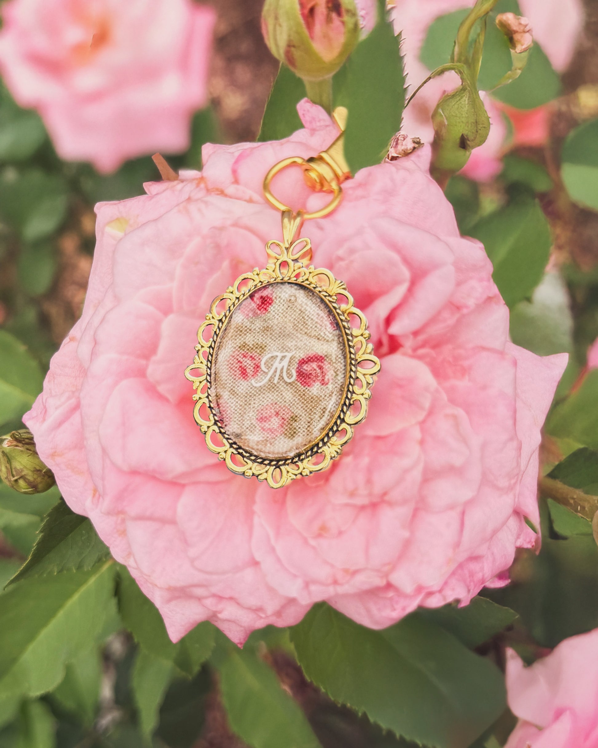 Designed to pair with the Adelaide, this antique-inspired ID tag features a rose-printed inlay framed in a gold floral bezel. A touch of heirloom charm for your prettiest pup!