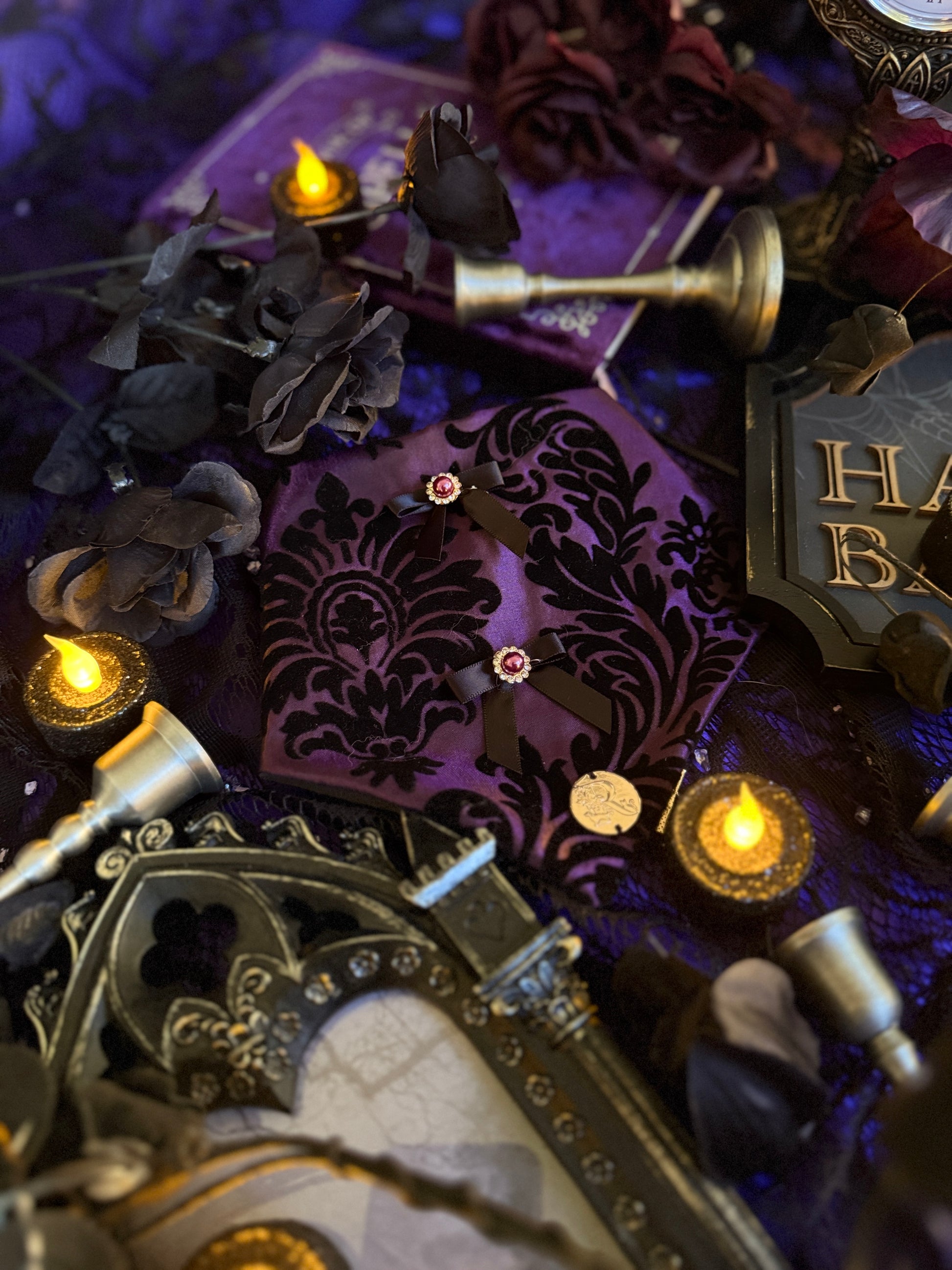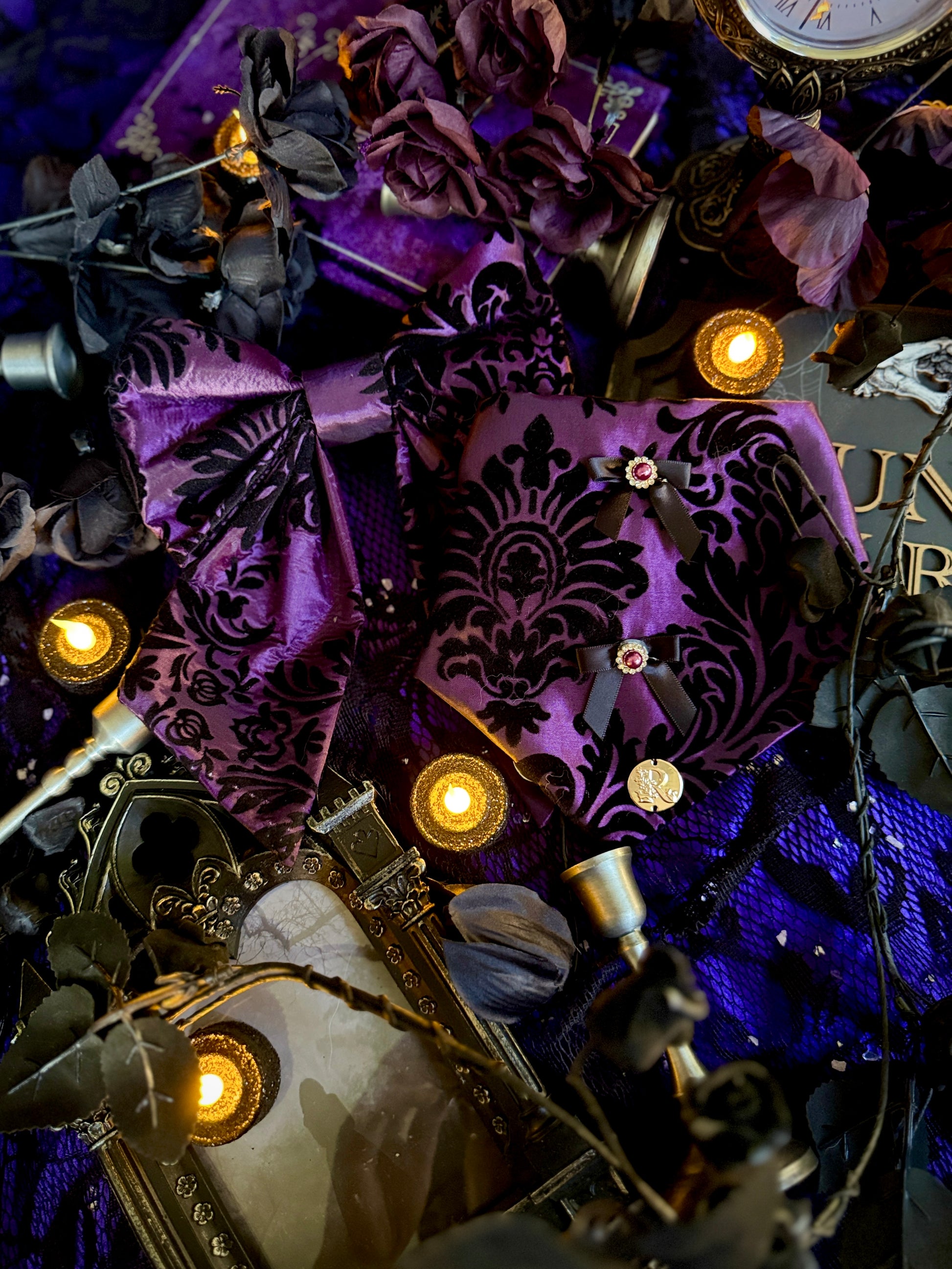 If you wish to add the Gothic Bat or Amethyst Charm, please add it as a separate item and I will include it with your bow as pictured. There is no extra charge for ambassadors and can be added to signature bows, mini bows and bow ties 🎀